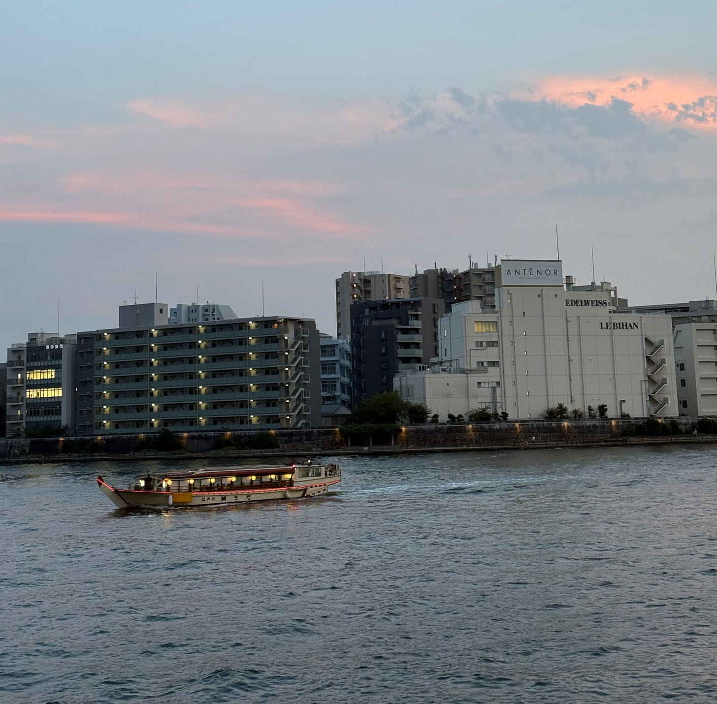 And like all living things, it has veins running through it. Tokyo is absolutely teeming with rivers and canals. The Sumidagawa in particular is a thicker vein than most—a wide swath of water winding gently along the curve of the city, in view of both skyscrapers and thousand-year-old temples alike.